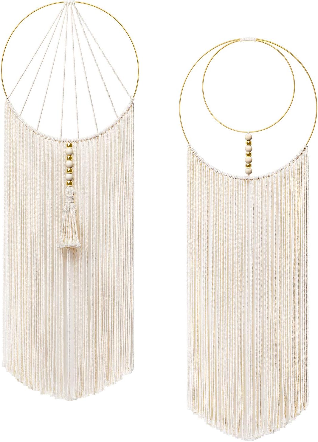 - wall hanging is made of golden matal ring and cotton cord and wood beads. Sturdy and premium quality. And highly match with your room decoration style. This cute can make a big difference in any space.