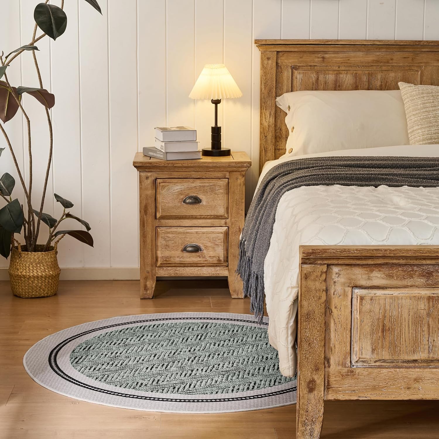- Thin & Durable Design : At just 0.24″ thick, this thin rug slides under any door and works with robot vacuums. This 4ft small circle rug features tightly woven construction and reinforced edging to prevent shedding and ensure long-lasting durability.
