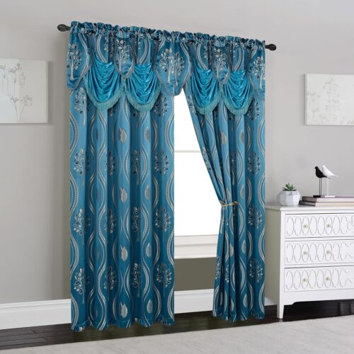 - The curtain is with attached fancy valance, which can add royal accent to your decoration and can beautify your house much better. Curtain with attached fancy valance is difficult and slow for production as only the most skillful labors can manage it. As a try, we provide EXTRA FABRIC TIEBACKS FOR THIS DESIGN.