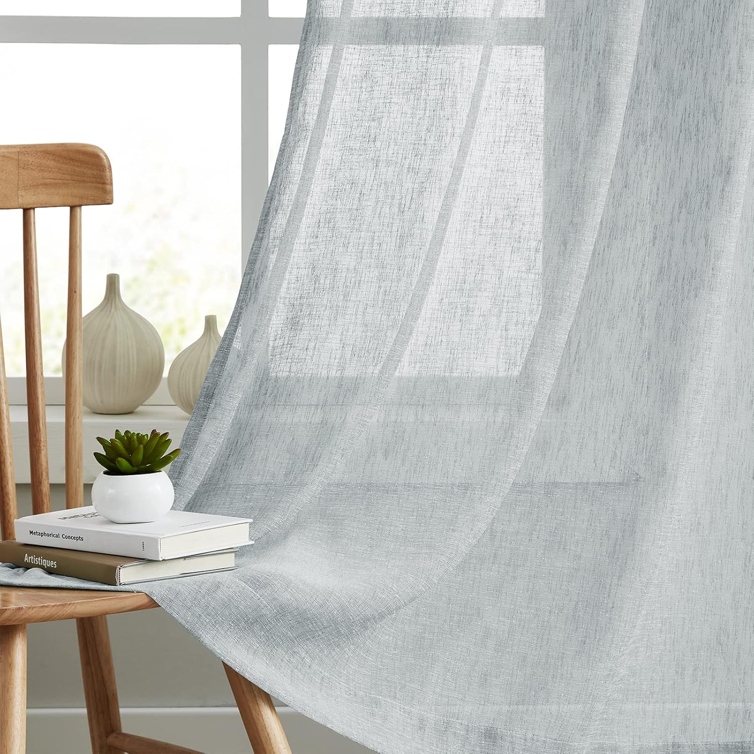 Grey Linen Sheer Curtains 84 Inches Long for Bedroom, Living Room Natural Flax Textured Light Filtering Rod Pocket Burlap Sheer Voile Drapes, 52×84 Inch, 2 Panels