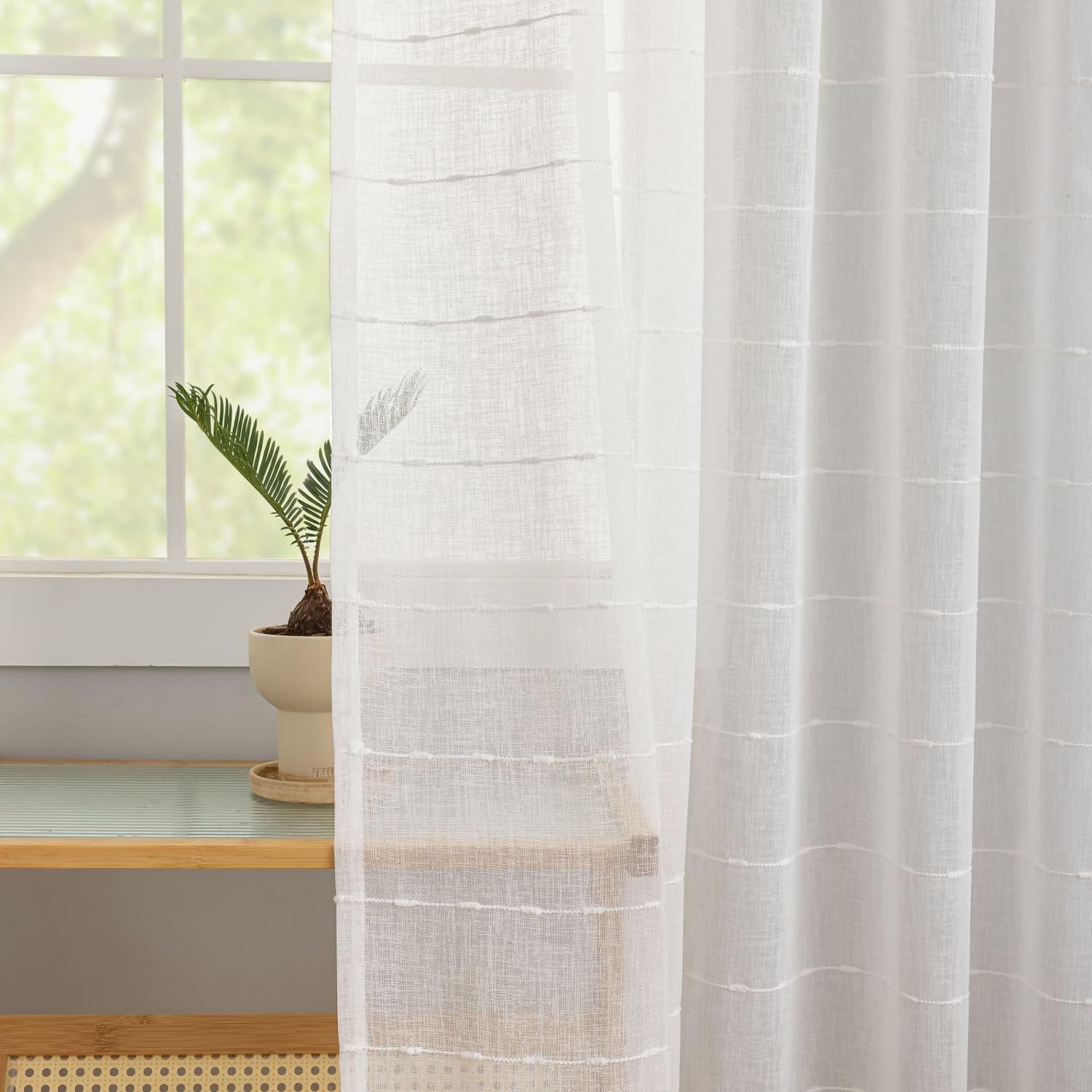 - LIGHT FLITERING &PROVIDE PRIVACY-These faux linen sheer curtains let in a gentle and diffused light that creates a cozy atmosphere. This filtering effect enhances the overall mood of the room, making it an ideal choice for spaces where you want to strike a balance between natural light and privacy.