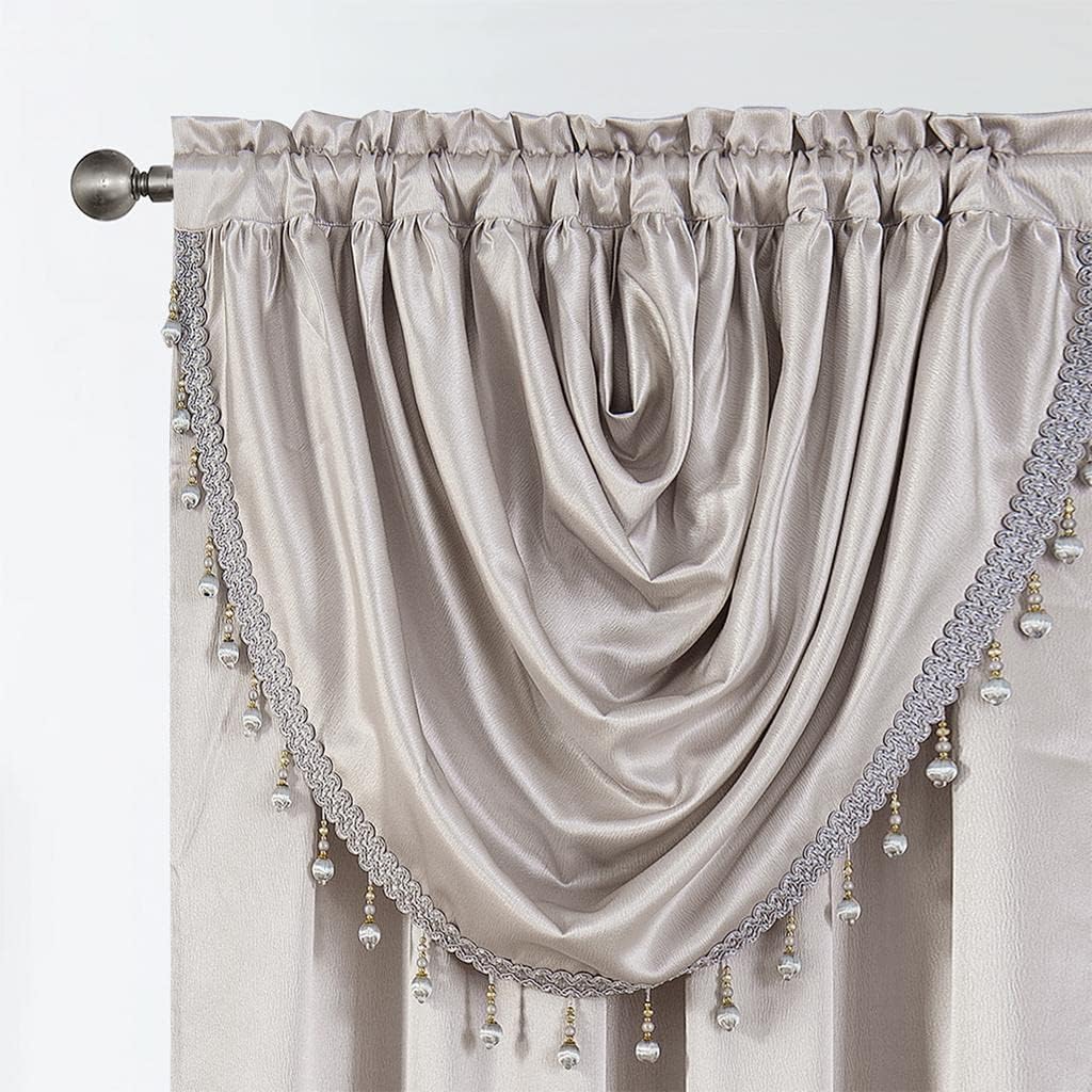 Window Panel with Attached Valance Curtain Bedroom Living Room Dining 42″X84″ Grey